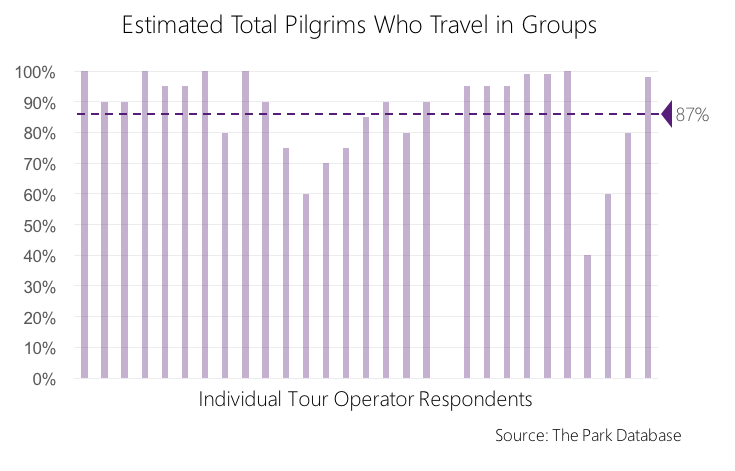 - Pilgrims to Saudi Arabia arrive predominantly in tour groups. This is significant, as it impacts how they travel, where they go, and how much they are willing to spend. While exact statistics are not available, based on our interviews, we estimate that 80-90% of pilgrims travel through licensed tour operators, rather than as independent travelers. These pilgrims purchase tour packages from the operators directly, and are subject to relatively fixed itineraries. This means that tapping into this market source, which is significant, has to be through the tour operators themselves, with perhaps some global marketing.
