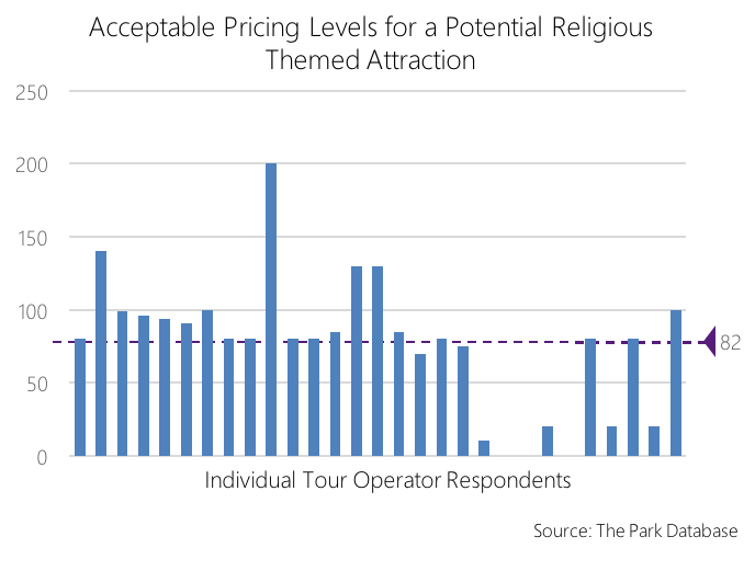 - Tour operators that we interviewed indicated an average level of approximately 80 SAR for a religious-themed attraction. Many pilgrims are from developing countries, and operators from these countries initially pushed back against the idea of a paid attraction. Although when pressed, operators from Pakistan and India indicated acceptable pricing of between 0 and 25 SAR. The outlier on the graph below (200 SAR) is from a tour operator located in the United States.