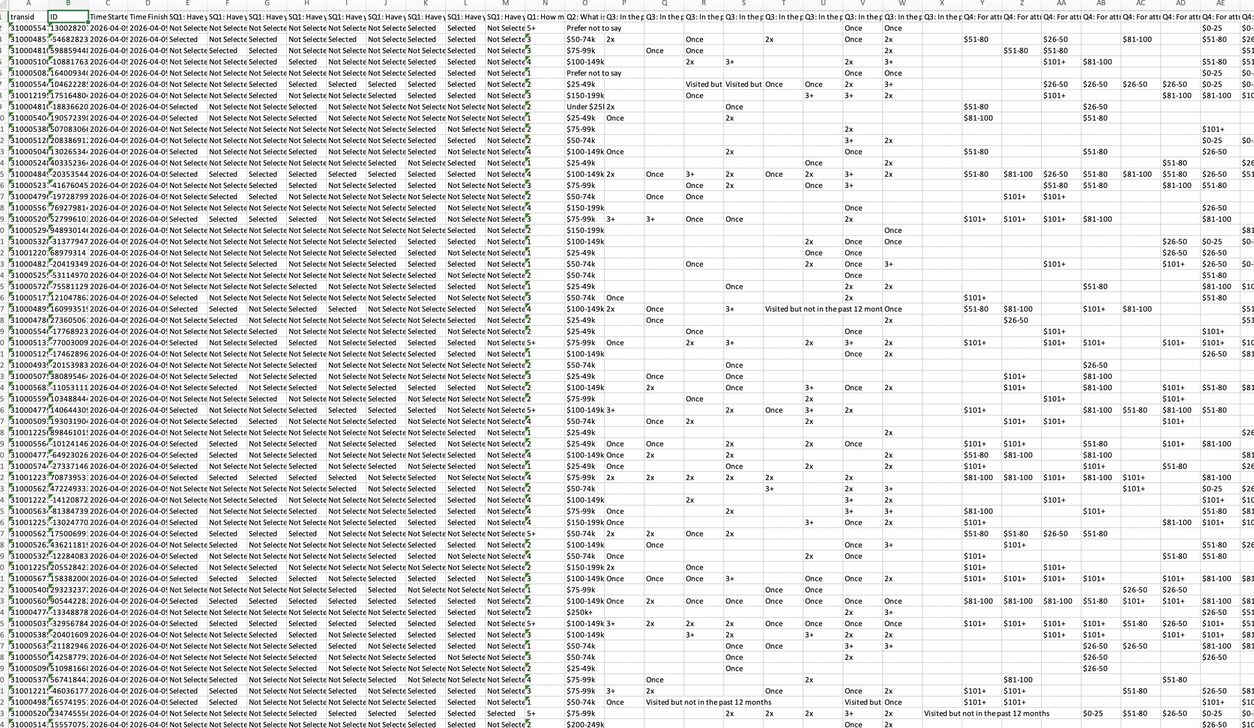 Excel file (sortable, filterable, modeling-ready) with individual responses, pre-built Summary tab, and 24 chart sheets. Survey methodology included.